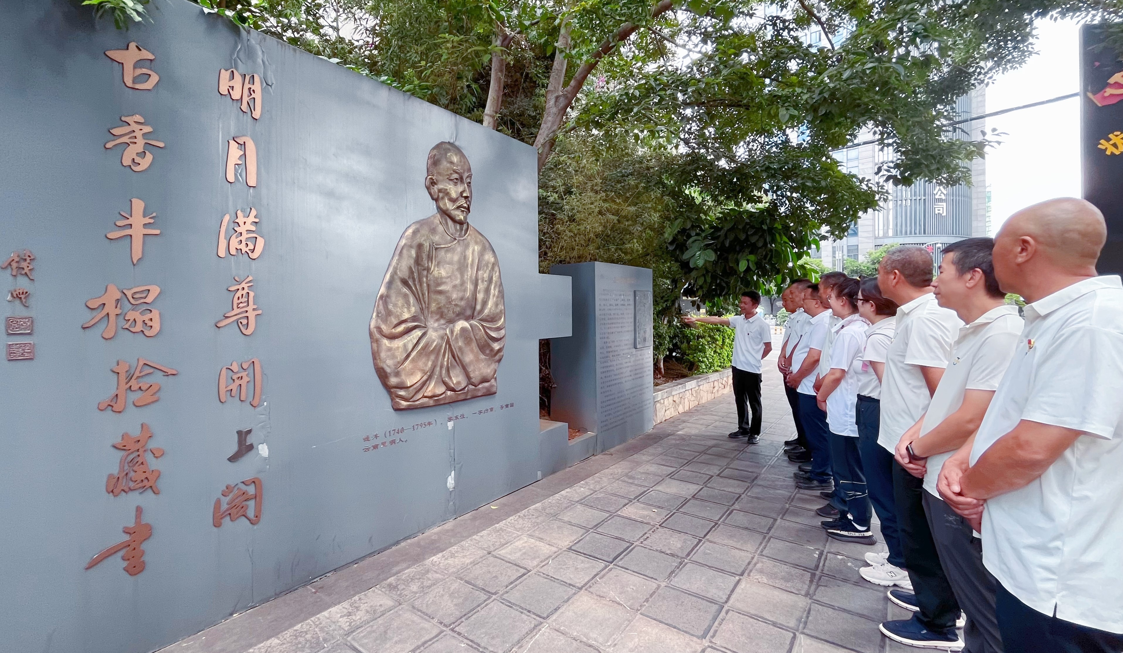廉政文化長(zhǎng)廊起于“清御史錢(qián)南園先生故里”殘碑,全長(zhǎng)700余米,由引言碑、錢(qián)灃生平事跡、清風(fēng)亭、正氣歌、狀元樓、石欄浮雕墻等12個(gè)廉政“特色景點(diǎn)”構(gòu)成。走進(jìn)廉政文化長(zhǎng)廊,黨員們?cè)谡J(rèn)真學(xué)習(xí)廉政文化和優(yōu)秀傳統(tǒng)文化,感悟“滇中第一完人”錢(qián)灃剛正不阿、恪盡職守、秉持正義、勤勞廉潔的氣節(jié)、品質(zhì)和錚錚風(fēng)骨。隨后,全體黨員集中學(xué)習(xí)了《國(guó)有企業(yè)管理人員處分條例》節(jié)選。