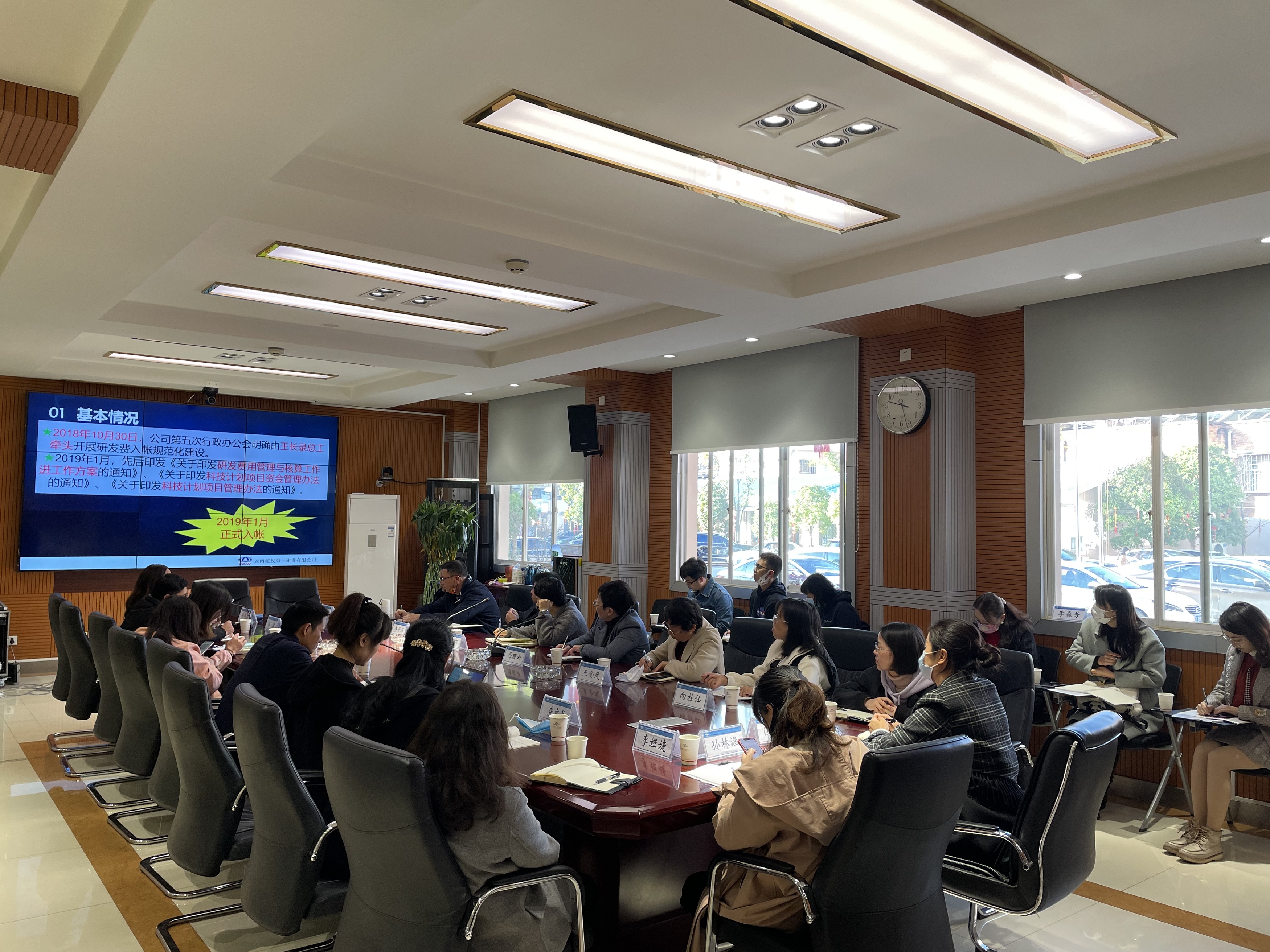 2月16日上午,總承包公司一行16人,到公司就研發費用歸集管理進行交流座談。公司技術質量管理部、財務部、成本管理部等相關部門人員參會,會議由技術質量管理部經理、技術中心主任沈雁波主持。