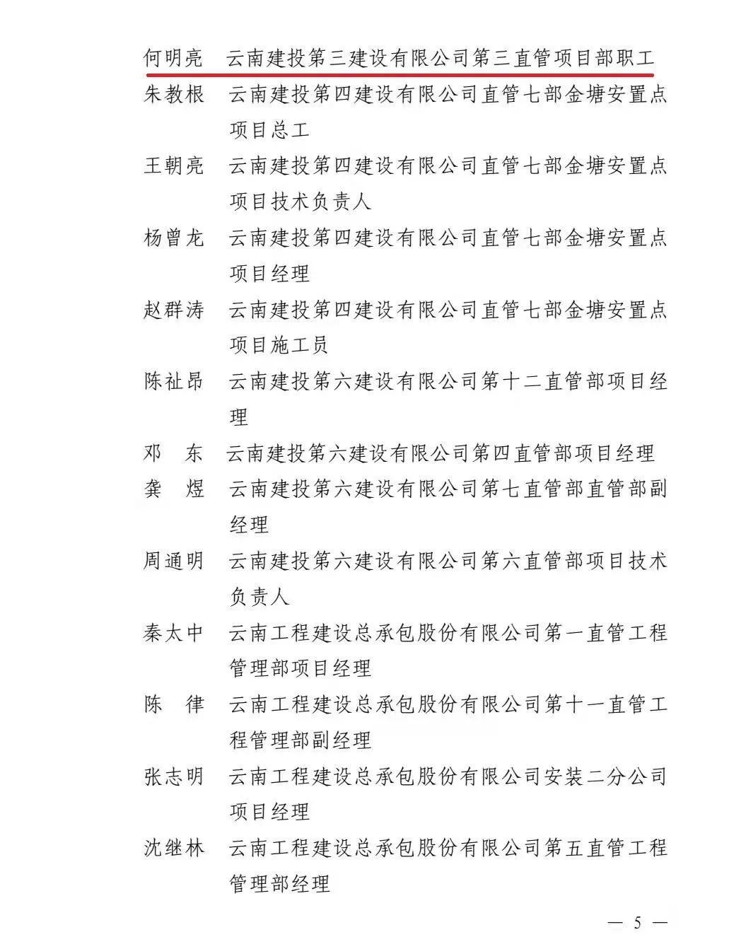 近日,云南省總工會和云南省建設投資控股集團有限公司聯合發文,通報表揚金沙江白鶴灘移民工程勞動競賽先進單位、先進集體及先進個人。公司第八直管項目部榮獲先進集體,公司總經理助理、第十一直管項目部經理施正東,第五直管項目部副經理張勇以及第三直管項目部項目經理何明亮榮獲先進個人。