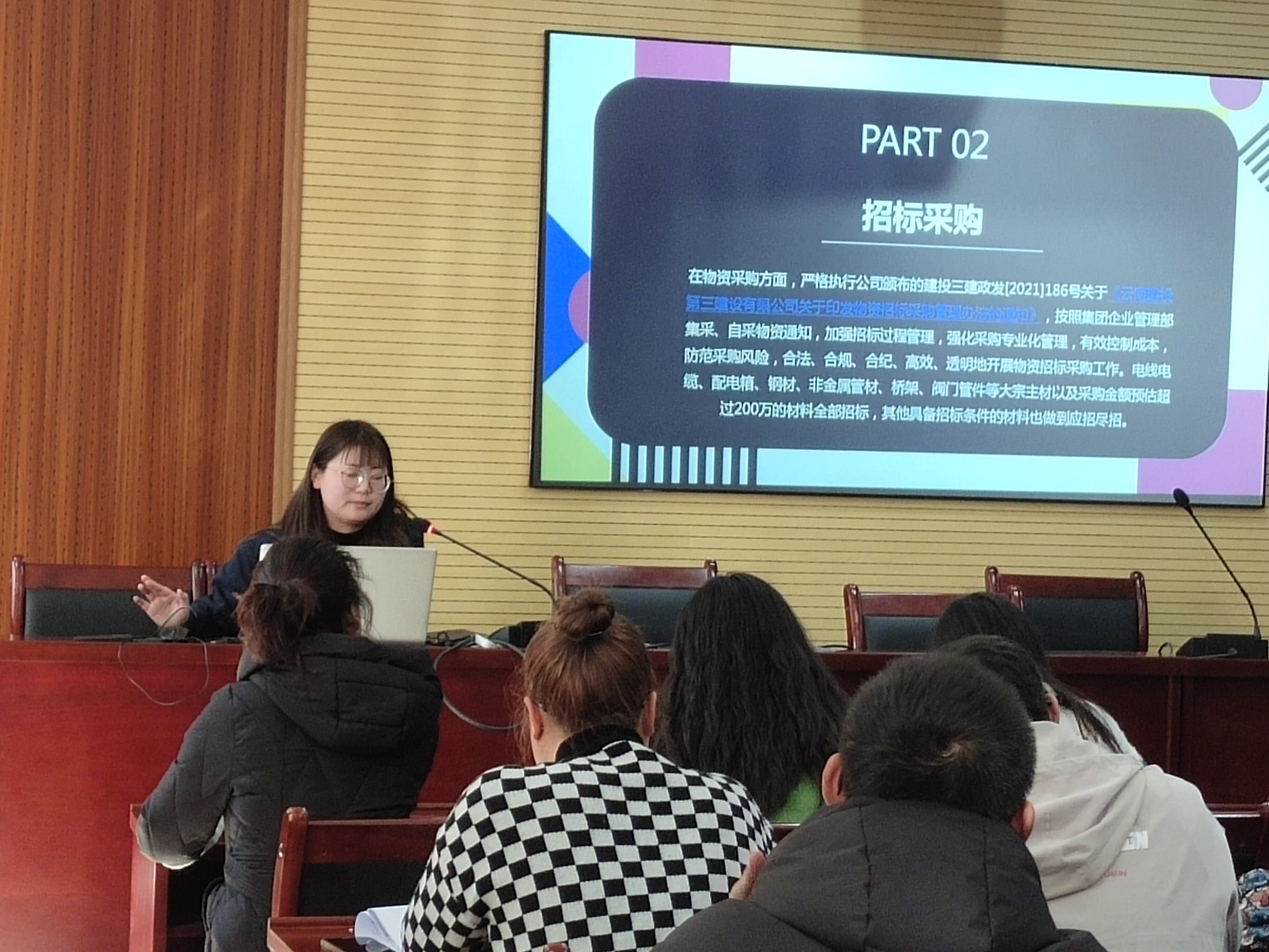 材料科就材料管理流程及制度、招標(biāo)采購(gòu)、NC錄入流程、月報(bào)及填表要求、合同及供方管理五個(gè)方面進(jìn)行了詳細(xì)講解,進(jìn)一步提升項(xiàng)目材料員業(yè)務(wù)管理能力。