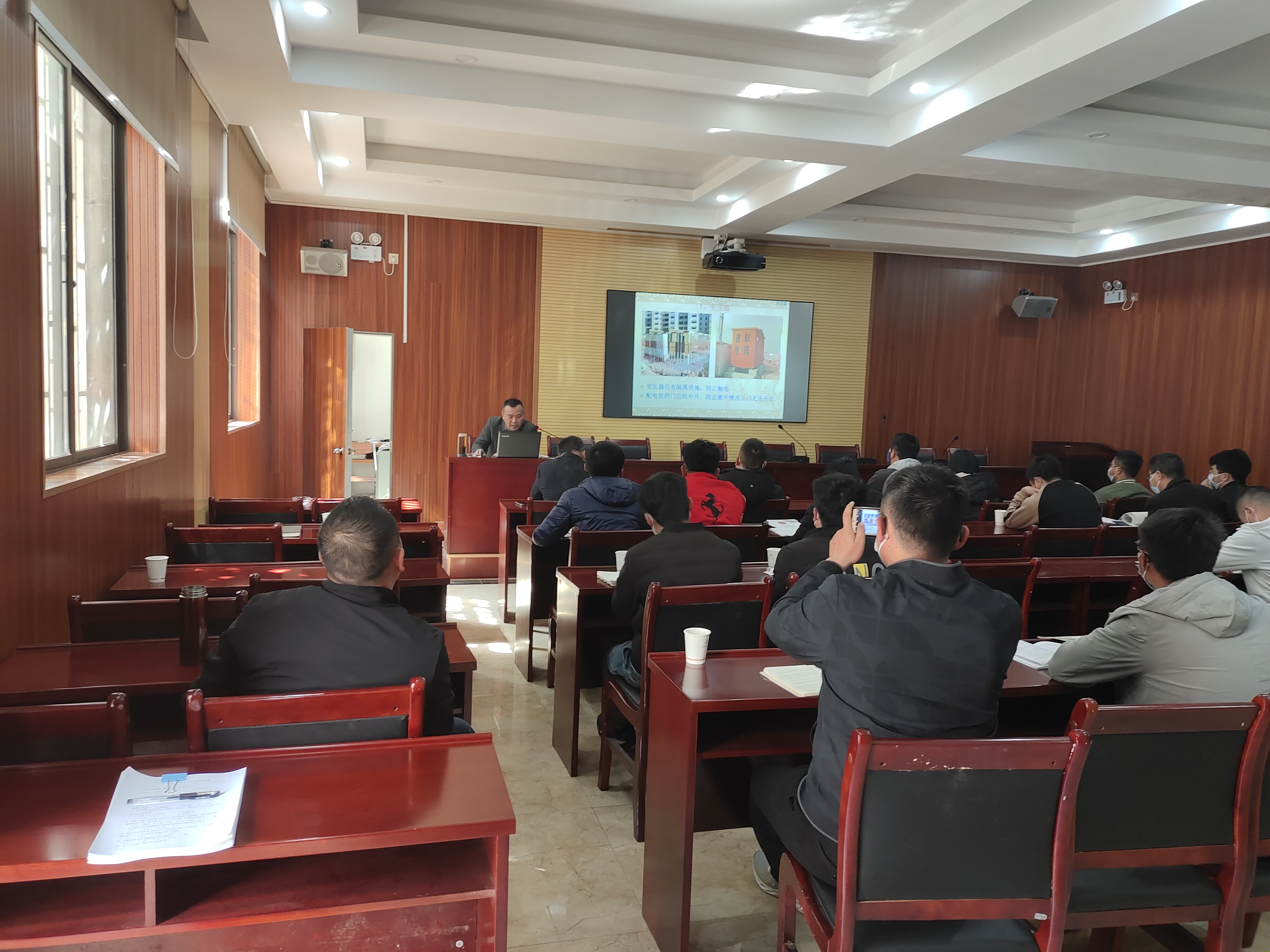 安全科針對(duì)建筑施工安全檢查標(biāo)準(zhǔn)JGJ59-2011進(jìn)行了詳細(xì)講解,并對(duì)施工現(xiàn)場(chǎng)危險(xiǎn)源辨識(shí)與風(fēng)險(xiǎn)評(píng)價(jià)做了說明。安全總監(jiān)對(duì)施工現(xiàn)場(chǎng)外電防護(hù)、接地與接零保護(hù)系統(tǒng)、現(xiàn)場(chǎng)照明、觸電急救等十個(gè)方面的臨時(shí)用電進(jìn)行了培訓(xùn)。會(huì)上,參培人員現(xiàn)場(chǎng)進(jìn)行考試,進(jìn)一步提升培訓(xùn)效果。
