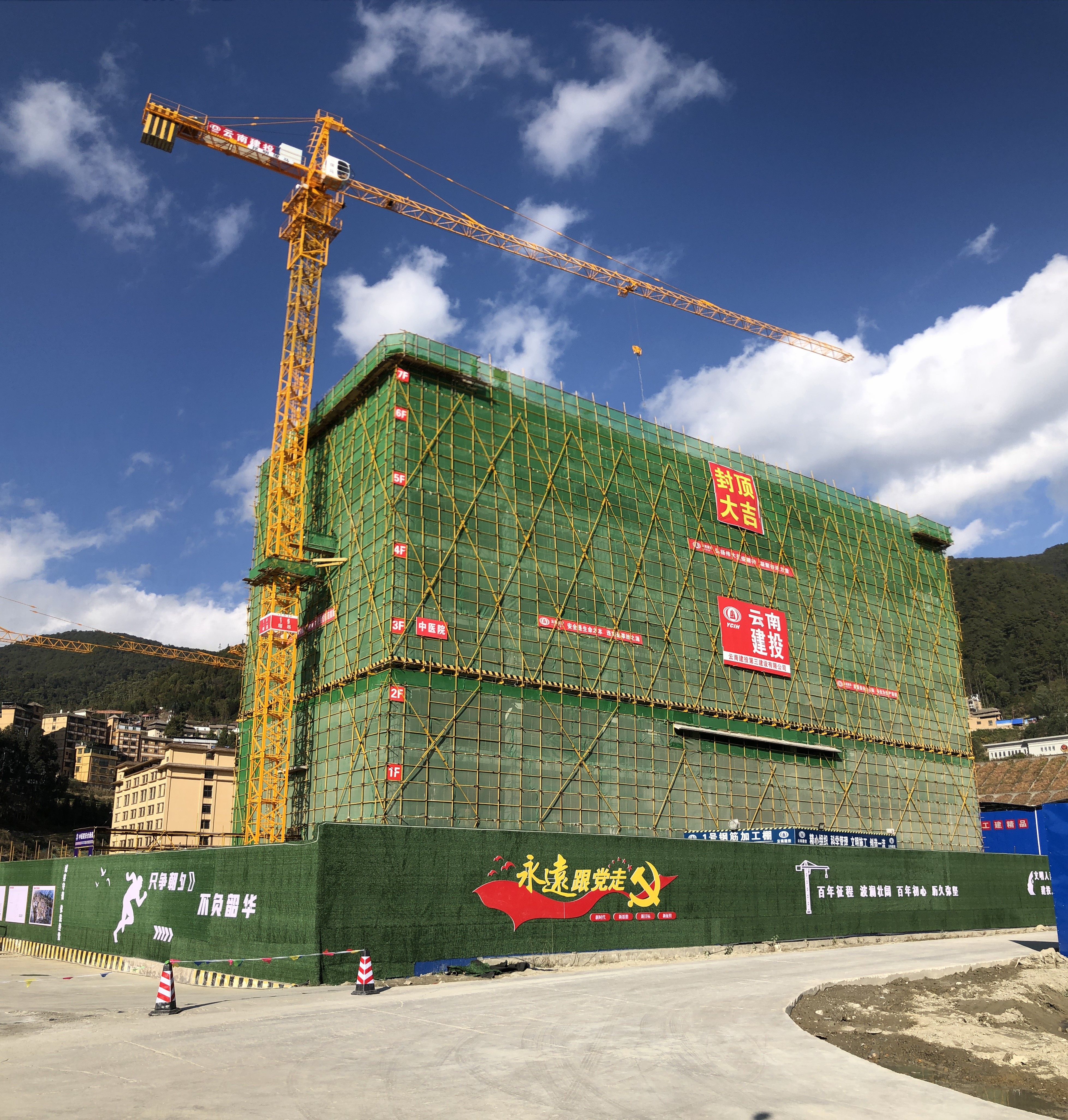 ▲綠春縣中醫醫院項目主體結構封頂