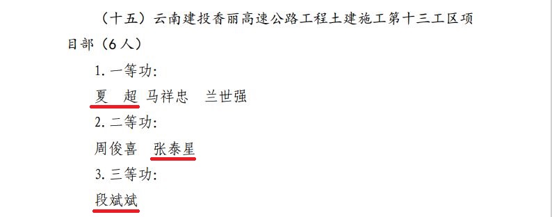近日,云南麗香高速公路投資開發有限公司發布《關于表彰國家高速公路網G0613香格里拉至麗江高速公路項目建設先進集體和個人的決定》,云南建投香麗高速公路工程土建施工第十三工區榮獲“集體二等功”,公司14名干部職工分別榮獲先進個人“一等功”、“二等功”、“三等功”。