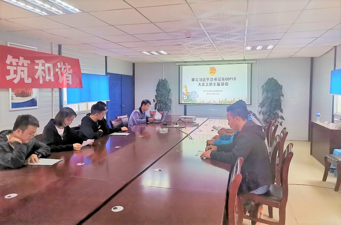 第十九直管部團支部在曲靖市印染廠項目組織開展“喜迎COP15 保護生物多樣性”主題團日活動,項目團員青年們觀看了生物多樣性保護專題片《共同的家園》。為更好地宣傳生物多樣性保護知識,團支部還向大家發放了《保護生物多樣性》倡議書。