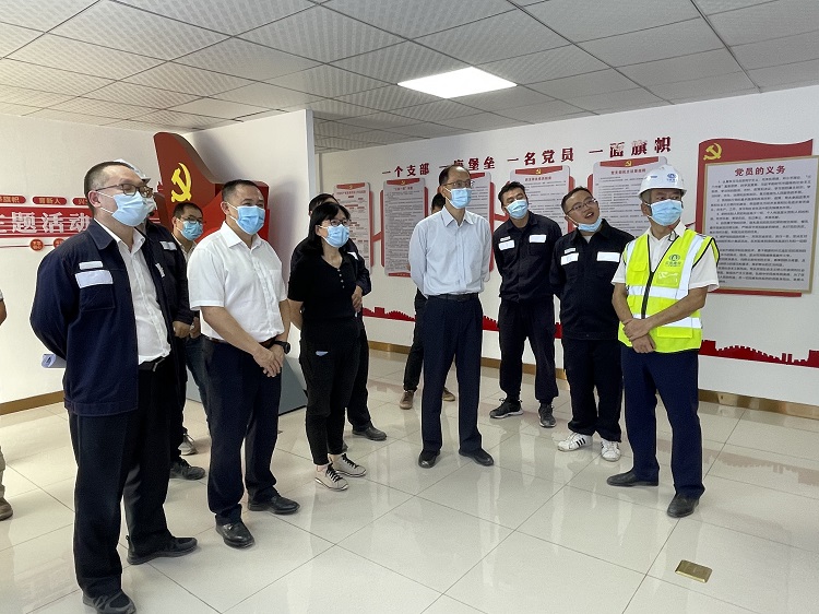 張忠東一行分別參觀了項目智慧工地指揮中心、黨建活動室、職工驛站,并到施工現場實地調研了項目建設情況。