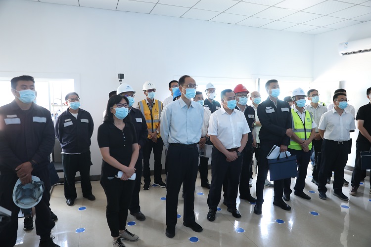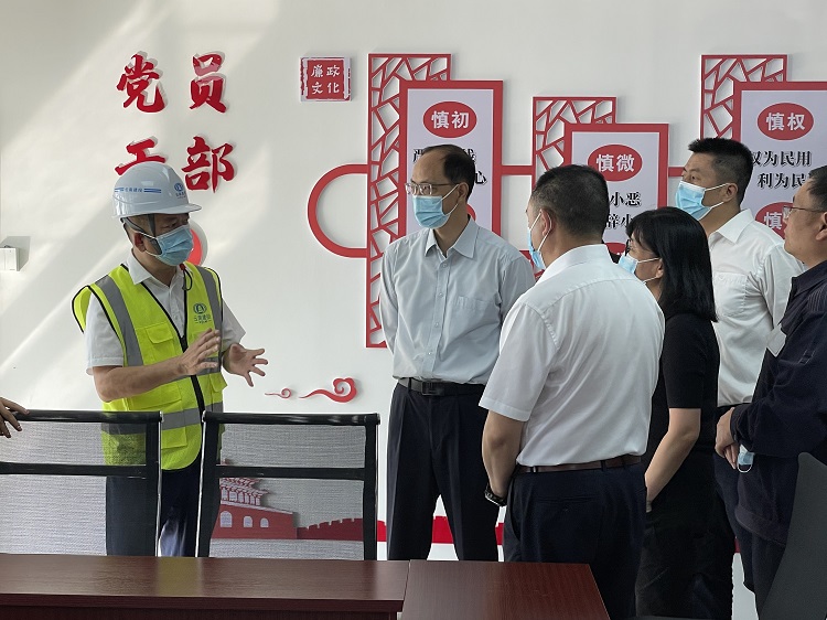 張忠東一行分別參觀了項(xiàng)目智慧工地指揮中心、黨建活動(dòng)室、職工驛站,并到施工現(xiàn)場(chǎng)實(shí)地調(diào)研了項(xiàng)目建設(shè)情況。