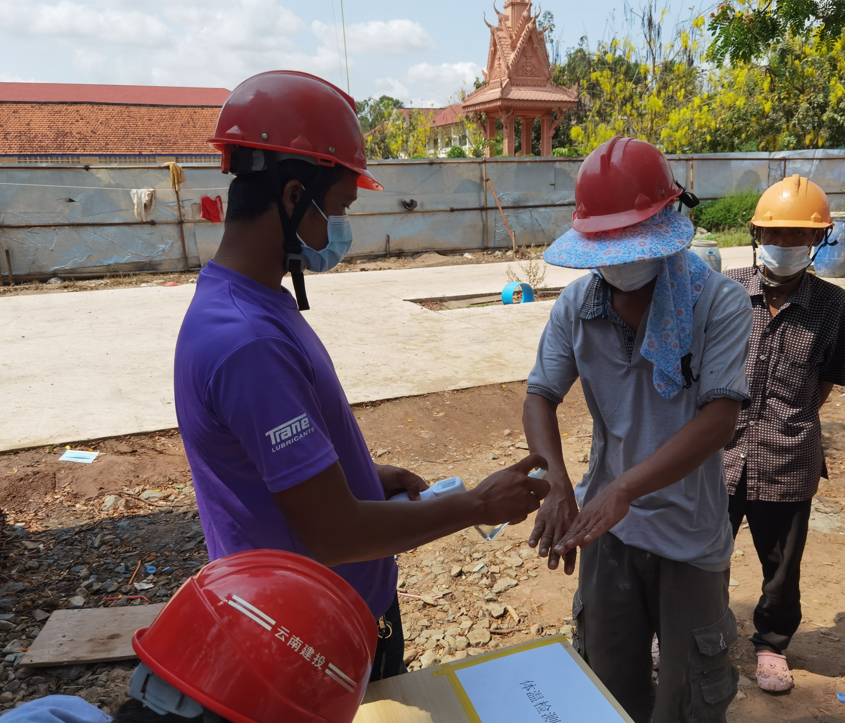 公司目前境外共計5個在建項目,涉及老撾、柬埔寨兩個國家。不斷健全境外各項目的疫情防控機制,一是各項目點編制疫情防控方案,制定應急預案,限制非必要外出。二是加強民工監管,粘貼防疫標識,宣傳防疫防控知識,嚴格控制人員出入,要求進出人員登記測量體溫、做好防護等。三是生活物資、防疫防控物資儲備充足,工作區、生活區定時定點嚴格消毒。四是要穩定人心,做好境外員工的思想工作,不要制造恐慌,自亂陣腳。