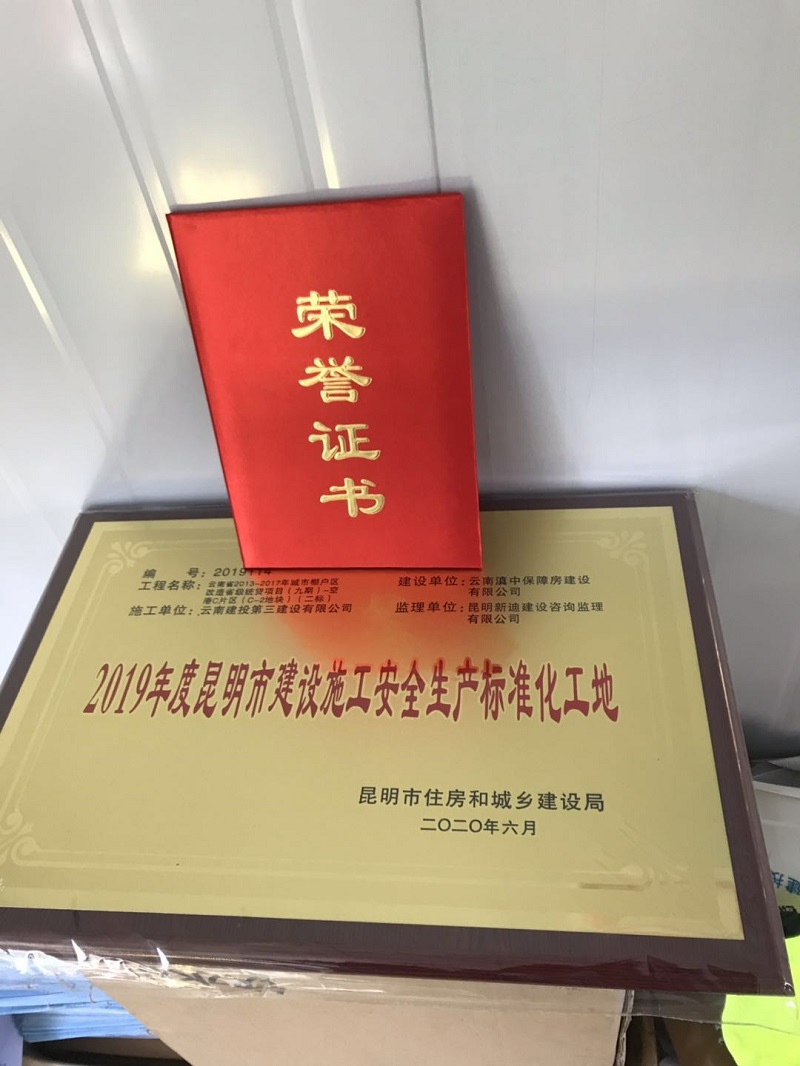 近日,由第一項目經理部承建的云南省2013-2017年城市棚戶區改造省級統貸項目(九期)-空港C片區(C-2地塊)項目,榮獲2019年度昆明市建設施工安全生產標準化工地。