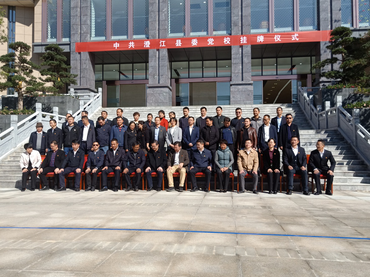 此次掛牌儀式首先由澄江縣委書記孫金會、市委黨校常務副校(院)長刀有忠、省委黨校常務副校(院)長楊銘書先后發表致辭,紛紛表示對項目的工程質量滿意,今后將一如既往關心支持中共澄江縣委黨校的工作和發展。隨后由楊銘書和玉溪市委副書記、市委黨校校長保明順,為“中共澄江縣委黨校”“澄江縣行政學?!薄俺谓h社會主義學?!苯遗?,最后參會領導合影留念。