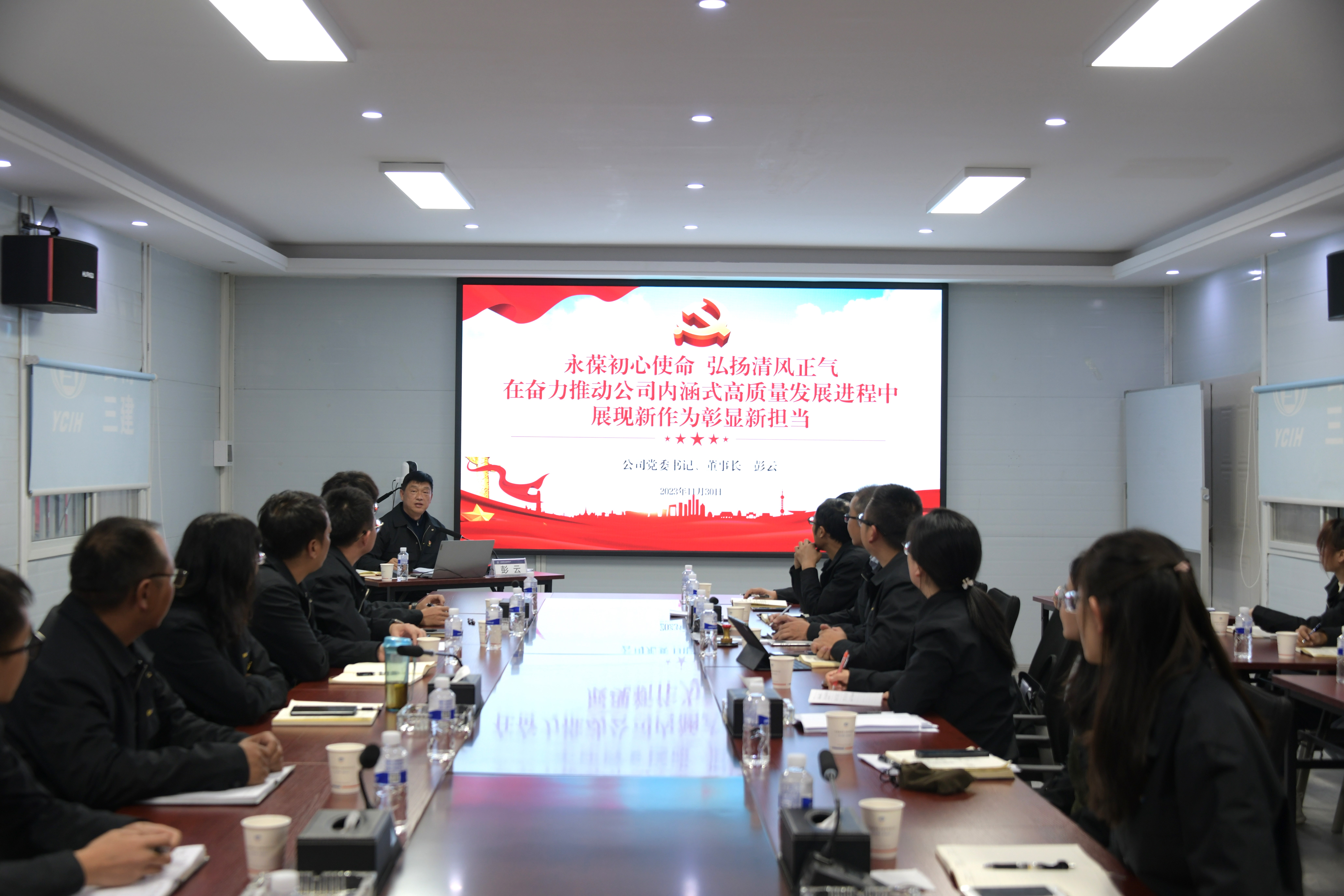 會后,彭云以《永葆初心使命 弘揚清風正氣,在奮力推動公司內(nèi)涵式高質(zhì)量發(fā)展進程中展現(xiàn)新作為彰顯新?lián)敗窞橹黝},從認清形勢、以案為鑒、提高站位、清正廉潔四個部分講授廉政黨課,讓大家深刻明白從中央到公司全面從嚴治黨的決心,認識到黨風廉政建設永遠在路上,警醒自己要清清白白做人、干干凈凈做事,切實投入到“清廉建投”建設中去。