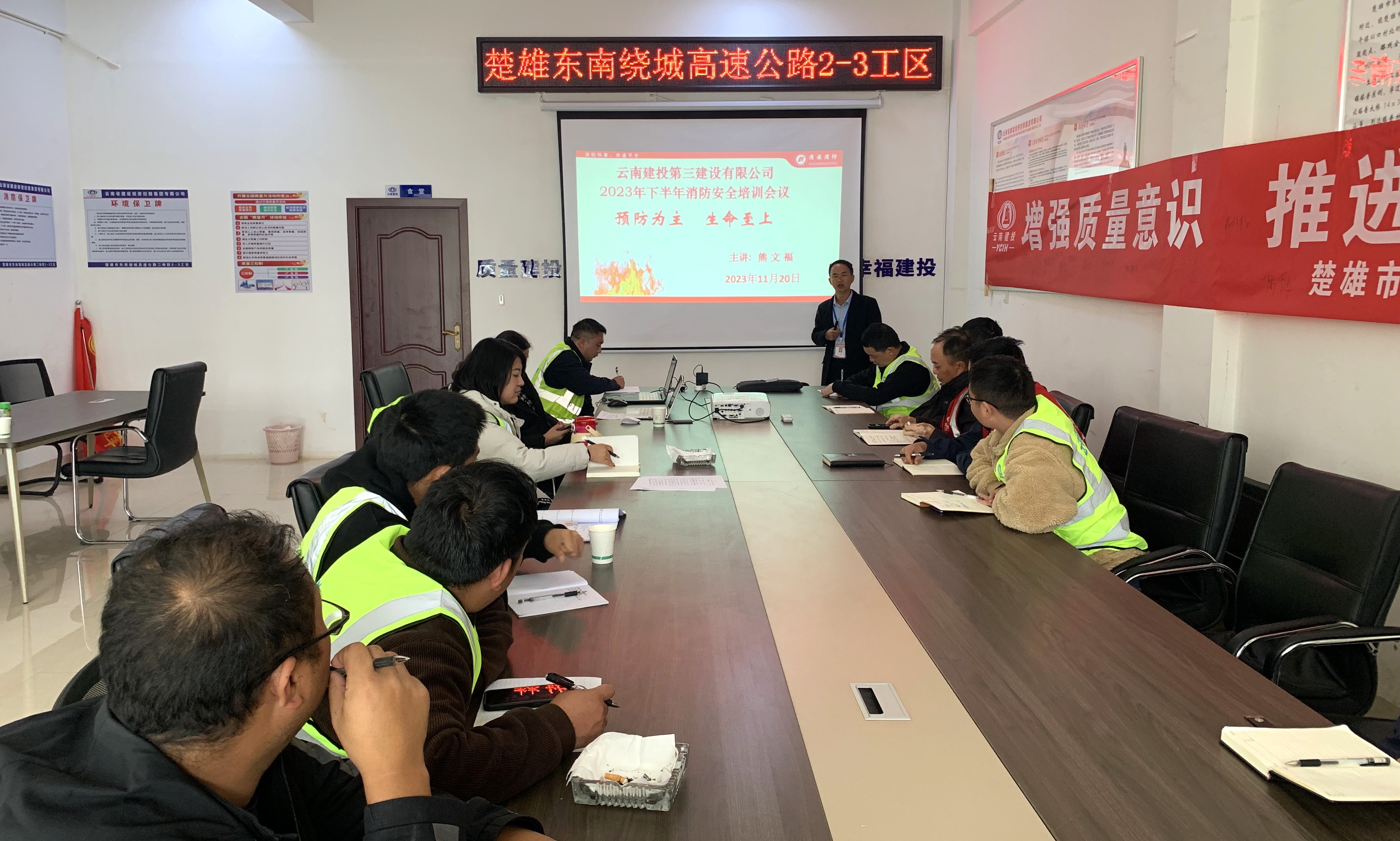 11月20日,公司紀檢監察部、安全保衛部到路橋市政直管一部承建的楚雄東南繞城土建2-3工區項目開展培訓。