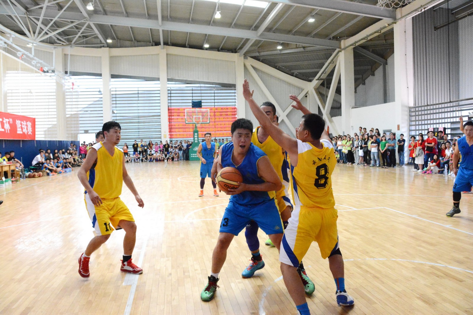 進入決賽循環(huán)賽,雙方球員都在奮力拼搏,拼速度、拼實力、拼戰(zhàn)術(shù)、拼體力、拼士氣。球場上,球員疾馳如風,勢如脫韁野馬;球場外,拉拉隊員鼓聲震天,氣如奔騰江河。第一節(jié)比賽結(jié)束,我方落后于對手一分,比賽進入第二節(jié),我方迅速調(diào)整戰(zhàn)術(shù),嚴防死守,緊緊拖住對方主力,并利用我方主力的身高優(yōu)勢搶占籃板分,一時間超越對手五分。比賽進入到第三節(jié),對方一路兩人夾擊我方主力,使其無法施展扣籃,經(jīng)過激烈廝殺,對方第一次與我方打成50:50的平分,并乘勝追擊,反超我方兩分,對方士氣頓時大增,我方也不甘示弱,拉拉隊員鼓聲不止、吶喊不停、掌聲不歇,球員斗志昂揚,被對手包圍就找空隙傳球,跌倒在地還是起來再戰(zhàn),憑著這種不服輸、不喊痛的毅力,加上多年的球場經(jīng)驗和彼此間的默契,我方適時投進一個三分球,再次超越對手兩分。