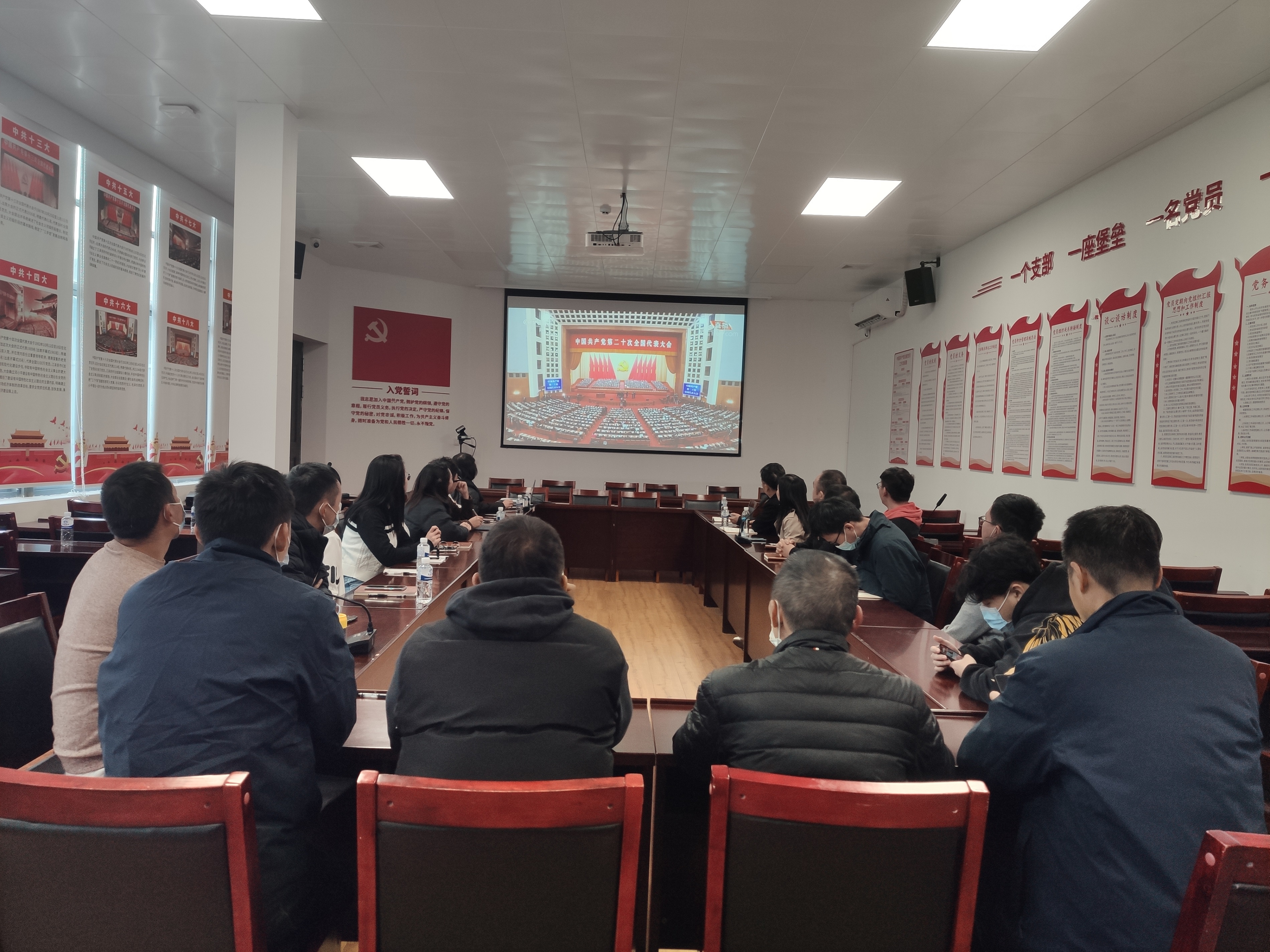 上午10點(diǎn),大家統(tǒng)一到一號會議室觀看中國共產(chǎn)黨第二十次全國代表大會開幕式。