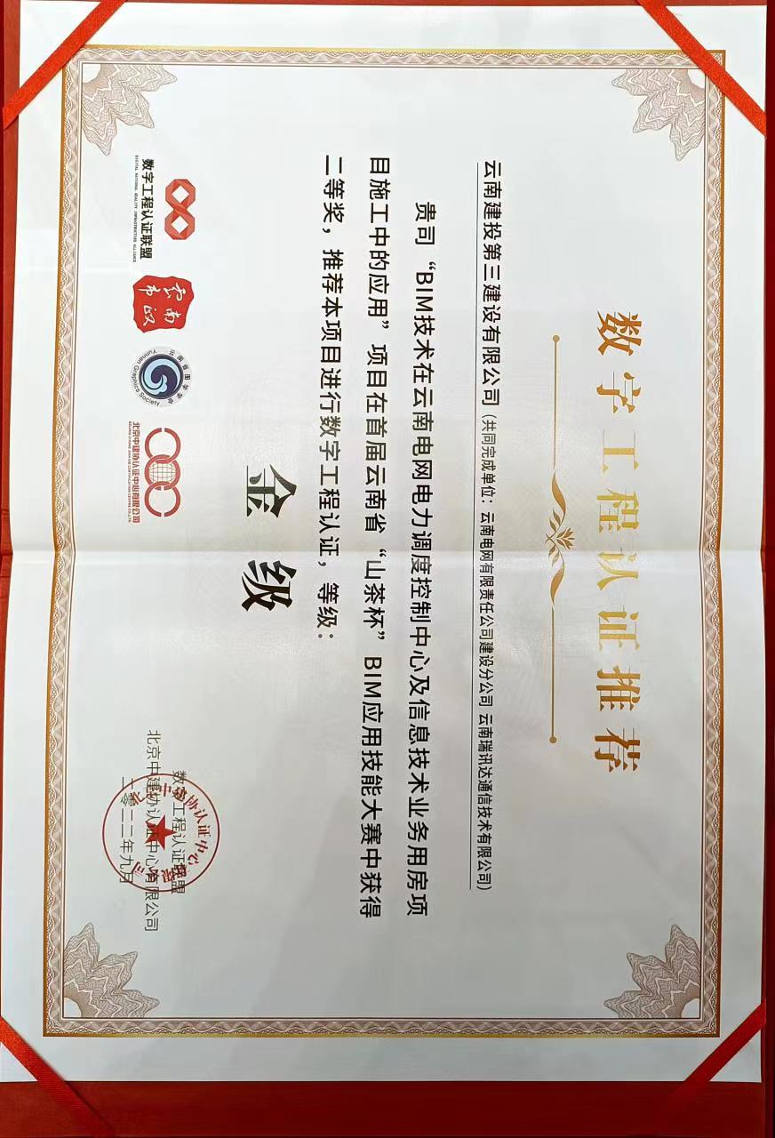 9月23日,云南省首屆“山茶杯”BIM應(yīng)用技能大賽頒獎(jiǎng)典禮在溫德姆酒店舉行,公司榮獲施工組二等獎(jiǎng),“云南電網(wǎng)電力調(diào)度控制中心及信息技術(shù)業(yè)務(wù)用房項(xiàng)目(一期、二期)”作為本次參賽項(xiàng)目榮獲了北京中建協(xié)認(rèn)證的數(shù)字工程認(rèn)證“金級(jí)”和BIM應(yīng)用案例“一等獎(jiǎng)”,相關(guān)完成人員榮獲“個(gè)人優(yōu)秀創(chuàng)新獎(jiǎng)”。
