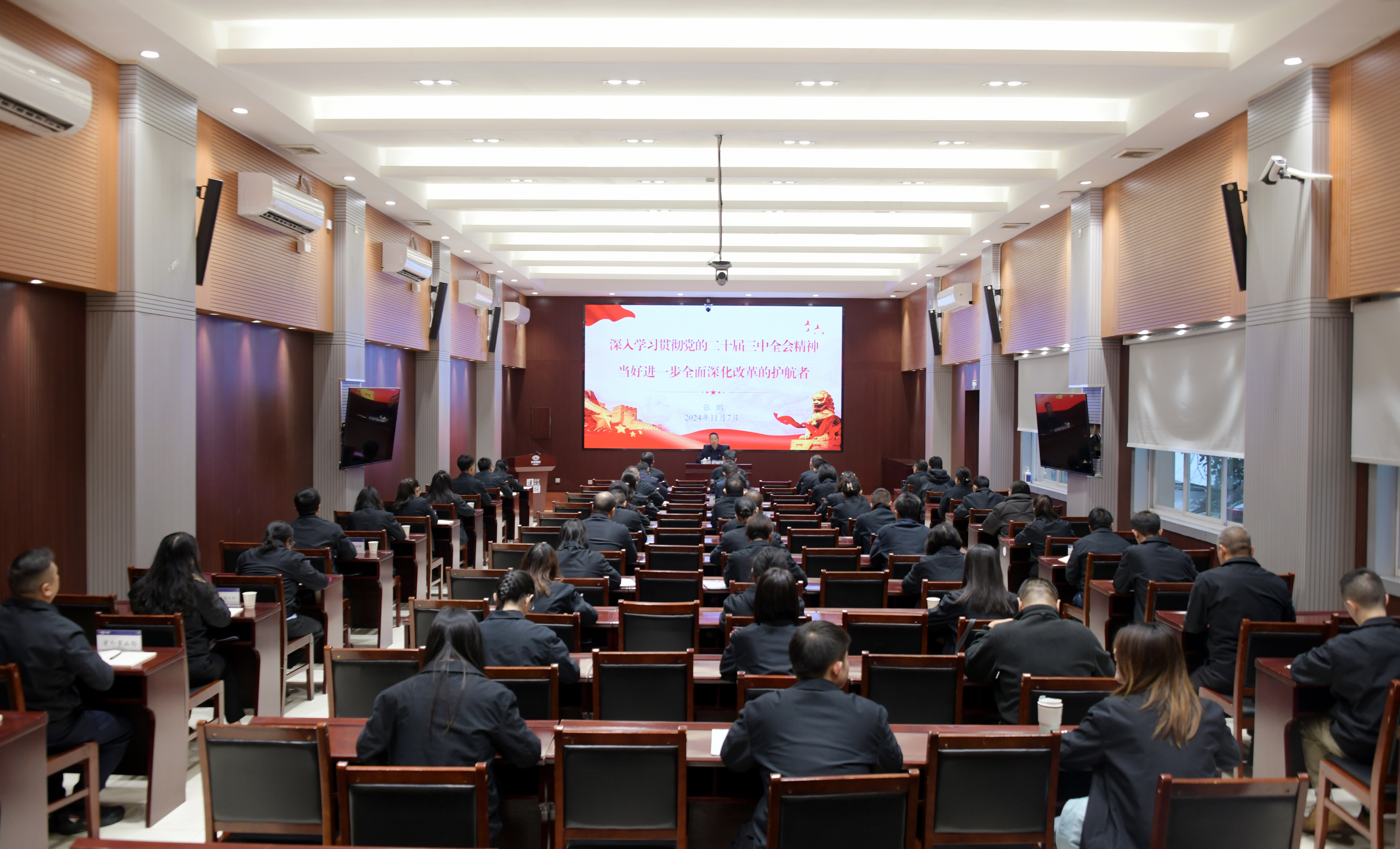 張鵬聚焦全會主題和集團實際,從充分認識黨的二十屆三中全會召開的重大意義、深入學習領會習近平總書記在黨的二十屆三中全會上的重要講話精神、全面準確理解《決定》提出的進一步全面深化改革重大舉措、以高質量監督執紀保障全會精神貫徹落實四個方面展開宣講,就推動全會精神見行見效、走深走實提出要求。