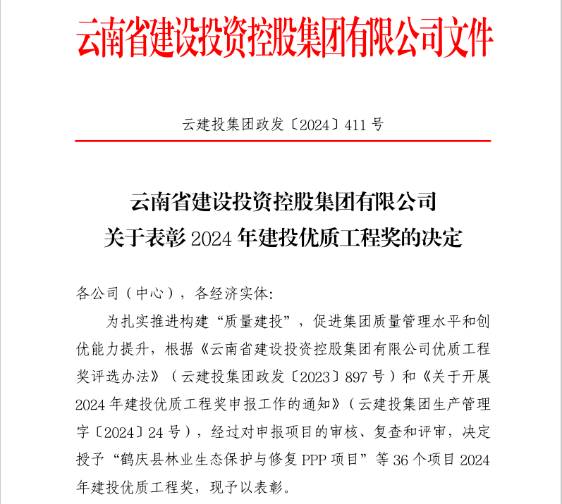 近日,2024年云南建投集團優質工程獎評選結果揭曉,由公司承建的麗江市傳染病醫院建設項目榮獲一等獎,承建的昆明卷煙工商物流一體化建設項目、西南林業大學石林校區建設項目(第二標段)榮獲二等獎。