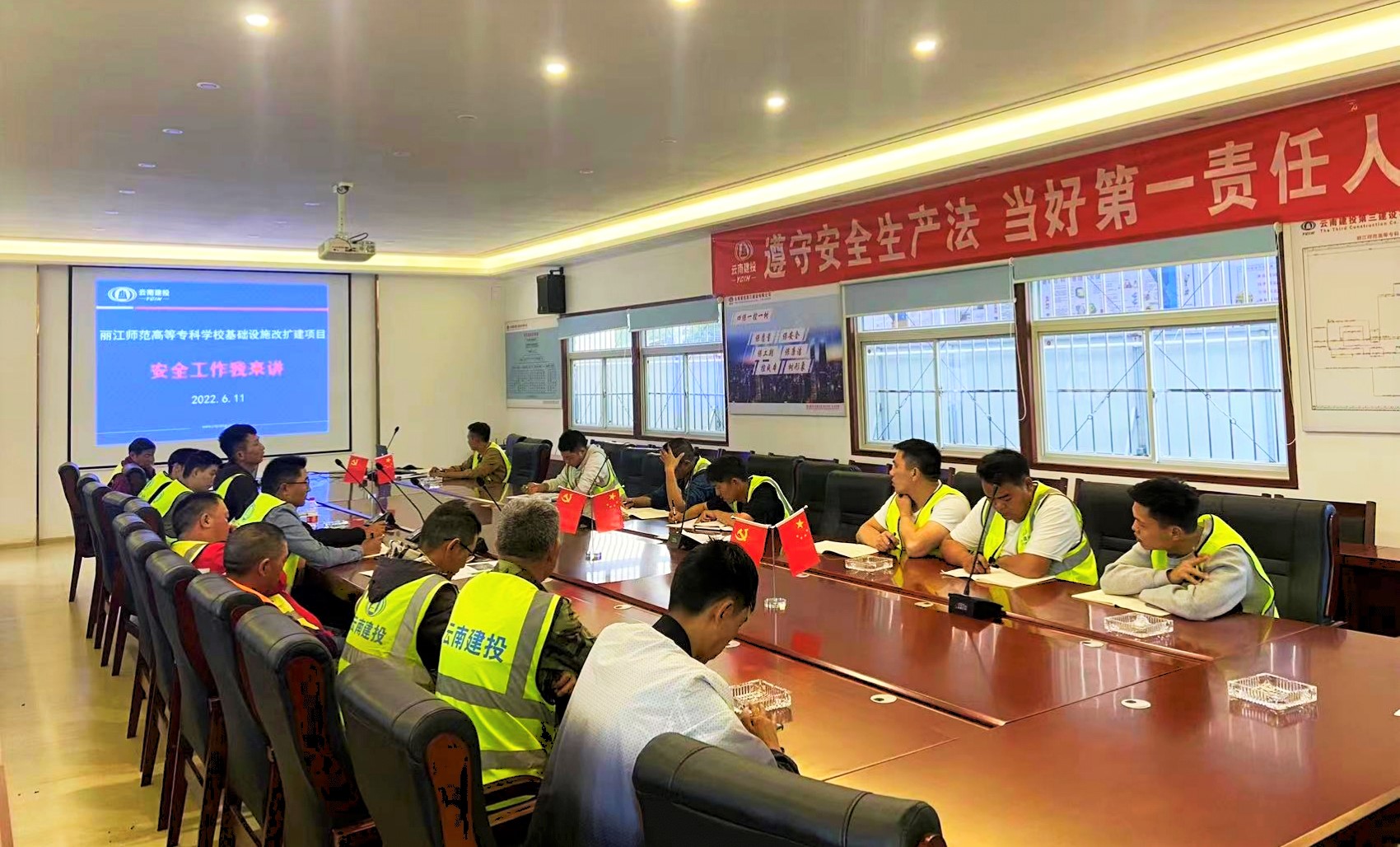 深入踐行一線工作法。九直管堅持將黨建工作融入一線生產經營,充分發揮黨支部戰斗堡壘作用和黨員先鋒模范帶頭作用,按照“找準重點、突出特點、展現亮點”的原則,不斷加強黨的建設,實現黨建與生產經營深度融合。直管部把黨的領導融入項目治理各環節,在決策程序上,完善支委會議事規則,對項目重大事項進行集體研究把關;嚴格落實“第一議題”制度,充分運用線上線下平臺,扎實開展黨史學習教育活動;堅持推進“黨建+項目落地”,今年直管部與麗江師范高等專科學校簽訂了支部聯建協議,著力打造施工一線的黨建示范點,讓黨旗在施工一線高高飄揚,更好發揮黨建引領促生產的作用。圍繞重點項目,黨支部成立工作領導小組,領導班子蹲守項目一線,積極解決“急難愁盼”問題。班子成員齊心協力,定期開展月檢、安全檢查,清明、五一、端午以及周末時間扎點項目一線,圍繞項目抓好服務保障工作。截止7月底,黨支部在項目一線宣講黨課4次,開展主題黨日活動7次。