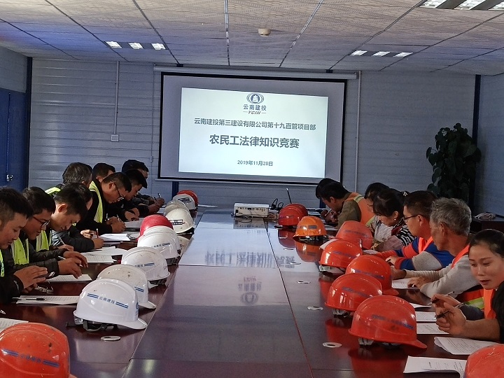 公司第十九直管項目部嚴格按照《云南省建設投資控股集團有限公司工會關于組織農民工參加法律知識競賽的通知》要求,于11月28日下午,在曲靖印染廠項目組織部分管理人員和農民工代表共25人開展了農民工法律知識競賽,進行普法教育。知識競賽以閉卷考方式進行,試卷主要有三大題型:單項選擇題、填空題、簡答題,試題涵蓋了《勞動法》《勞動...