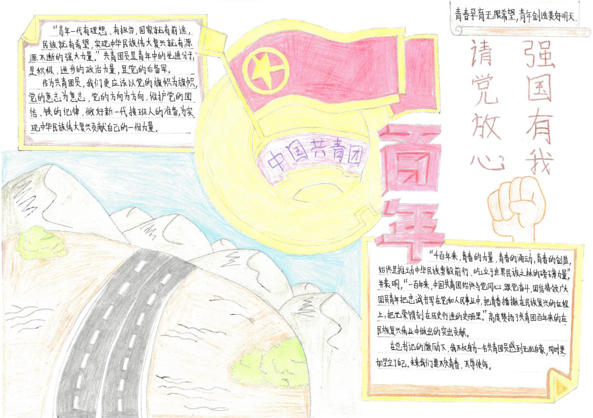 創(chuàng)作學(xué)習(xí)作品。在階段學(xué)習(xí)后,各團(tuán)支部組織團(tuán)員青年結(jié)合自身學(xué)習(xí),積極創(chuàng)作學(xué)習(xí)手抄報(bào)、繪畫、貼紙等作品,以豐富多彩的“小文創(chuàng)”讓學(xué)習(xí)成果生動(dòng)起來。